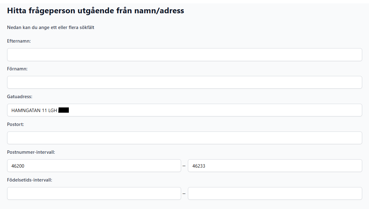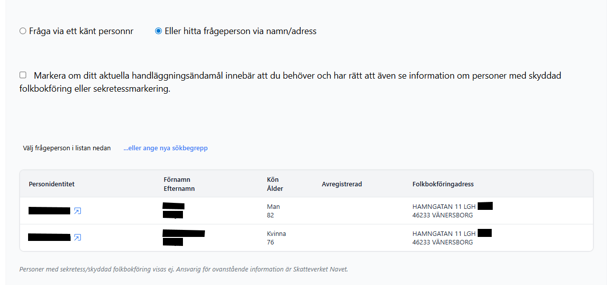 Söka efter personer på en folkbokföringsadress